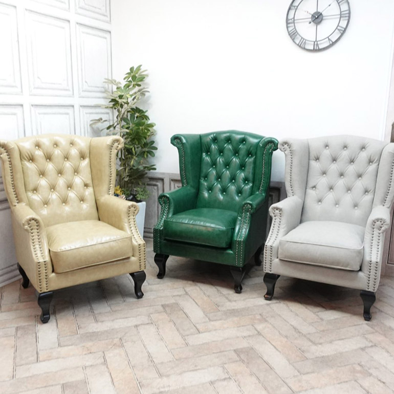 英国風ハイバックソファはホワイト以外にも多彩なカラーバリエーションをご用意しております。