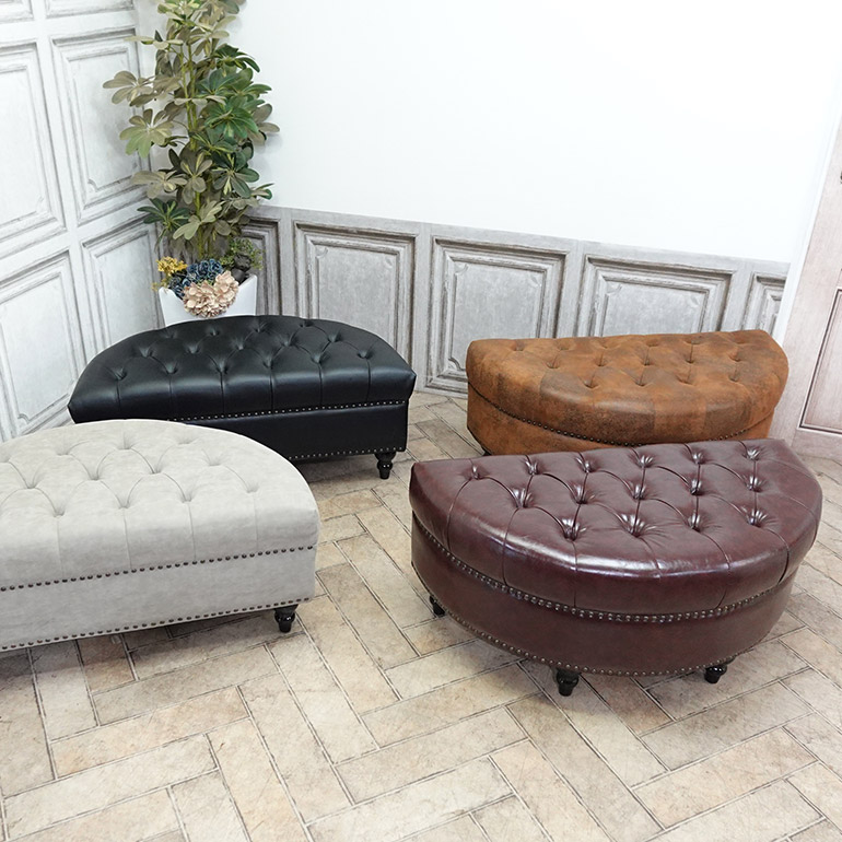 英国伝統のクラシックデザインを忠実に再現した「Vincent」シリーズに、待望の半月型スツールが新登場しました。
