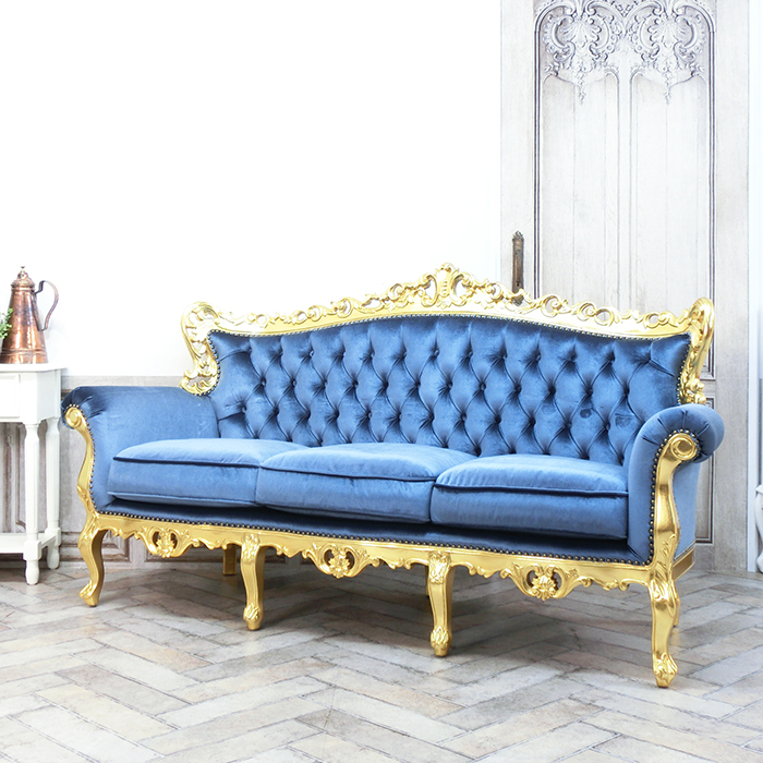 トップページ > ソファ・アンティークテイスト > 色でソファを選ぶ > 落ち着いた大人のクールブルー 青系座面
