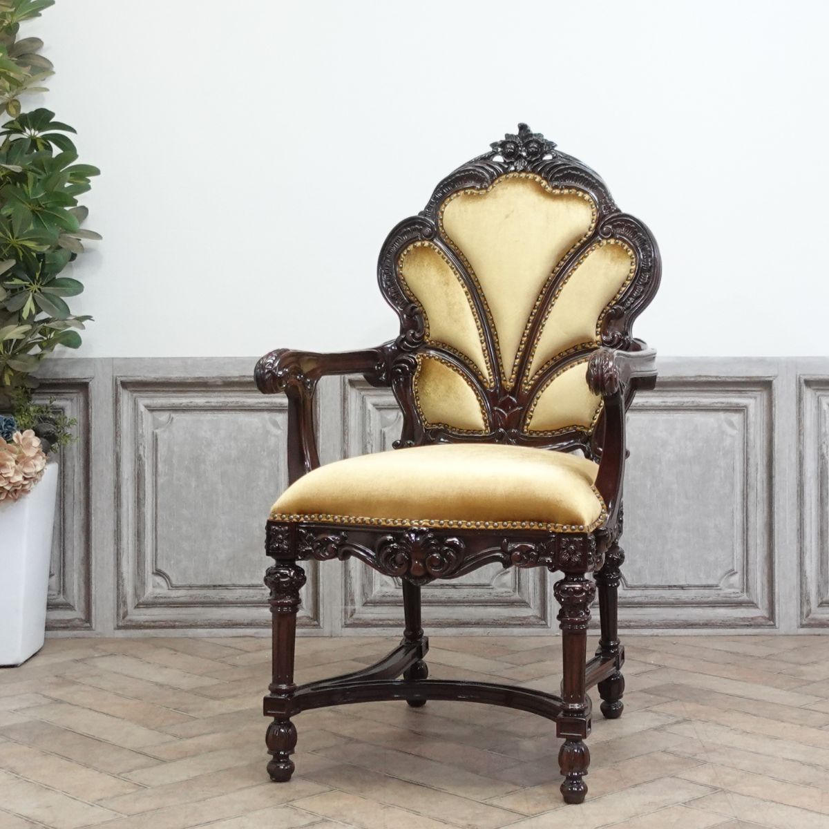 背もたれに華麗な彫刻を施したバロック様式のデザインを踏襲したチェアです。
