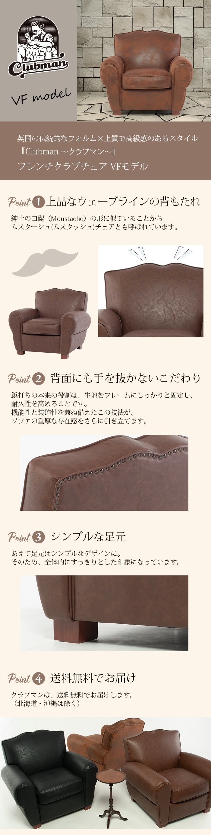【Clubman クラブマン】フレンチクラブチェアVFモデル。