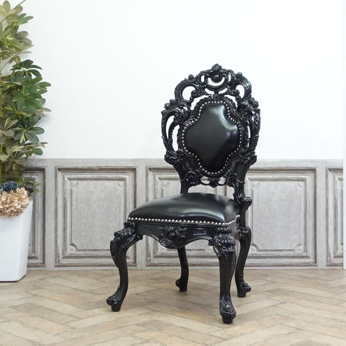 背もたれに華麗な彫刻を施したバロック様式のデザインを踏襲したチェアです。