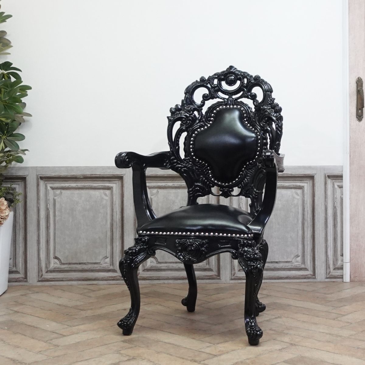 背もたれに華麗な彫刻を施したバロック様式のデザインを踏襲したチェアです。