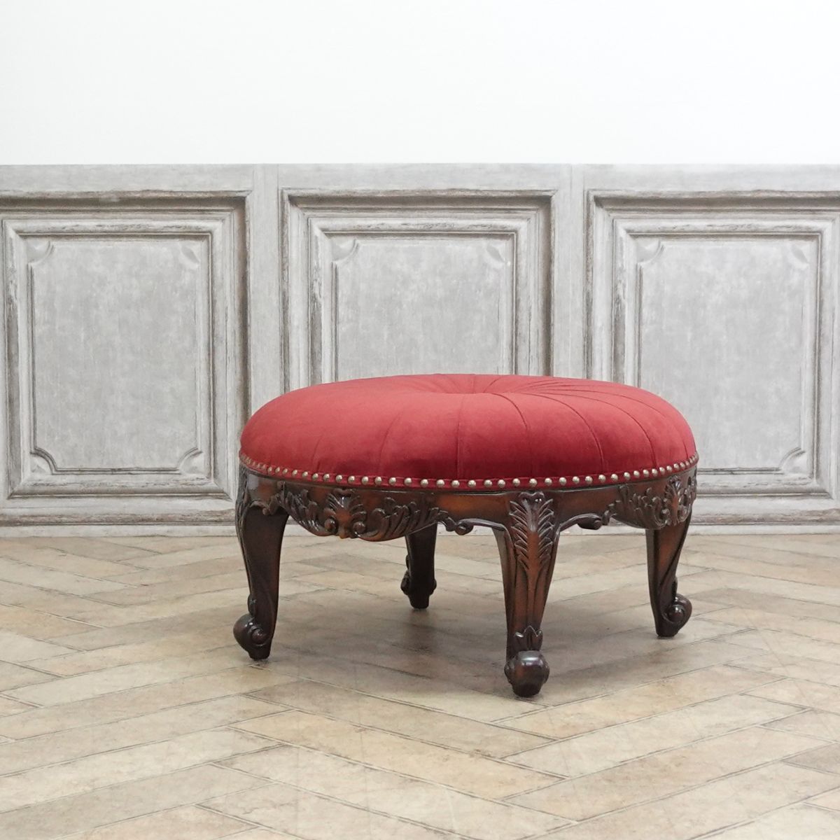 繊細な彫刻と猫脚が魅力のオットマンです。