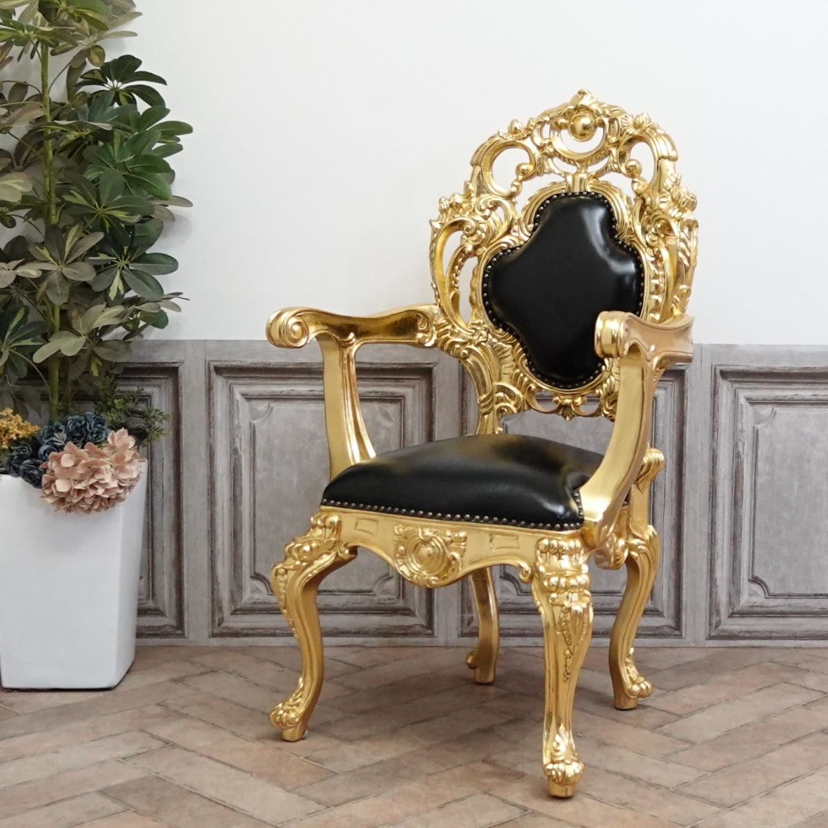 背もたれに華麗な彫刻を施したバロック様式のデザインを踏襲したチェアです。