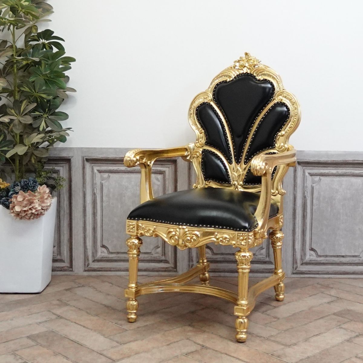 背もたれに華麗な彫刻を施したバロック様式のデザインを踏襲したチェアです。