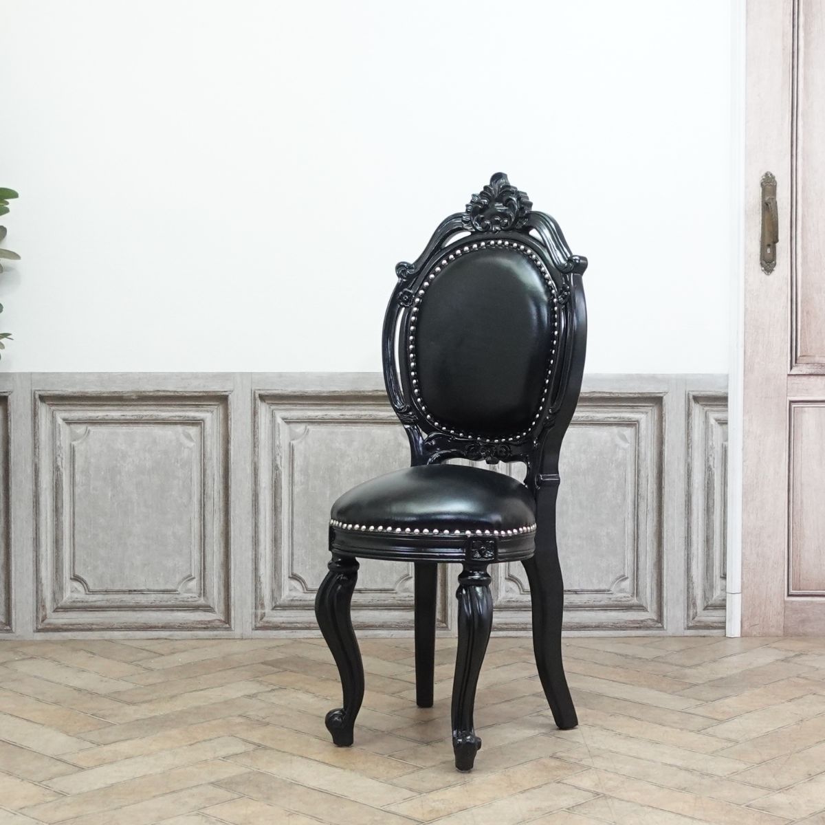 背もたれに華麗な彫刻を施したバロック様式のデザインを踏襲したチェアです。