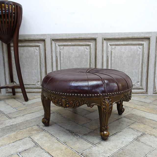 繊細な彫刻と猫脚が魅力のオットマンです。