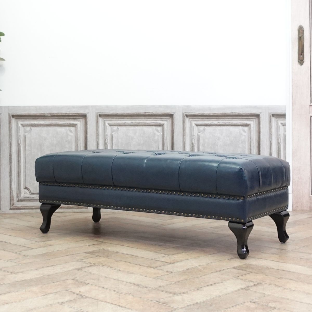 ネイビーフェイクレザー × ブラック猫脚モデル