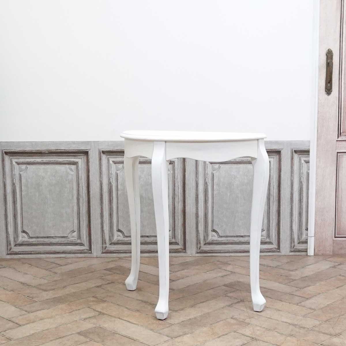 半円型のコンソールテーブルは、壁沿いにそっと置くだけで素敵なコーナーとして存在感を表します。